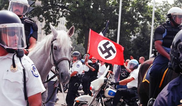 Police charge anti-fascist protesters who were stabbed at white nationalist rally but protect the neo-Nazis